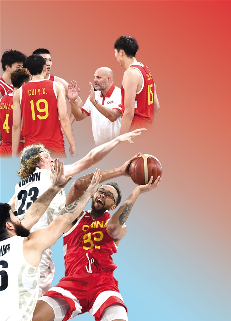 由于短时间内连续征战,队员们的体能受到一定影响,加上新西兰队外线发挥不俗,中国男篮半场落后8分,第三节一度落后11分。不过,李凯尔在下半场开始发力,攻防两端表现抢眼,帮助球队不断将比分逼近。