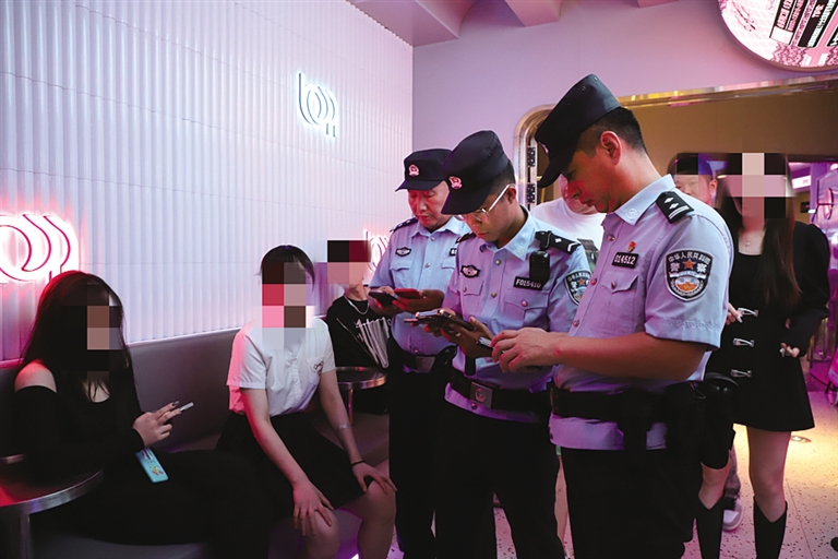“集合!出发!”8月11日21时,记者跟随人民路派出所民警检查了呼伦南路的兰易网吧、黑8桌球会所、拾叁茶艺店、龙庭浴场、霄云一号、内蒙古开元名都大酒店、宓司MS酒吧、海棠湾足道等场所,对各场所人员进行盘查,并调取监控设备,对场所内消防安全设备进行严查。