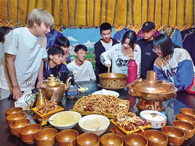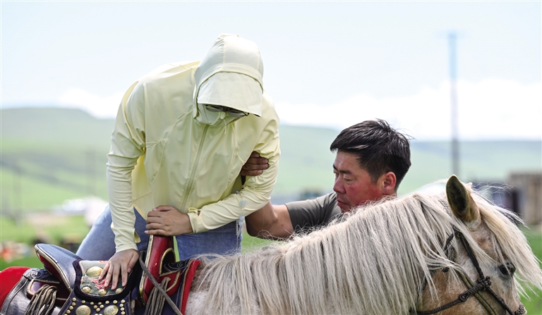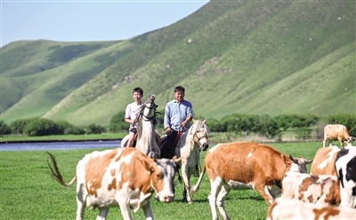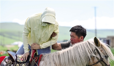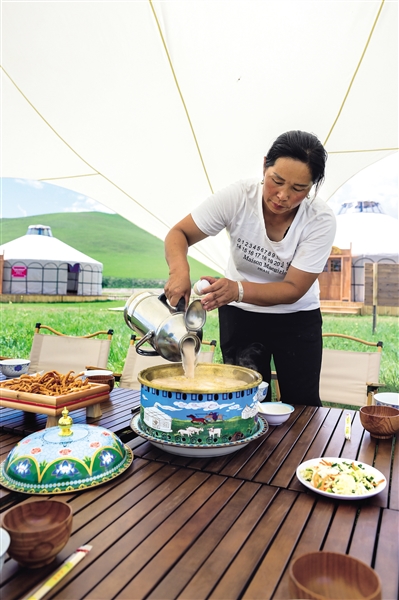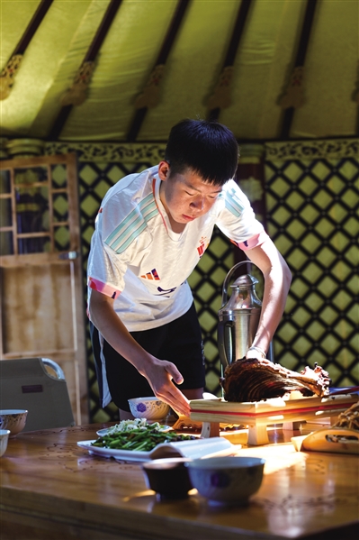 今年夏天,苏道家又多了一项新工作——经营起自己的“牧家乐”,名为“苏道家庭牧场”。游客来到这里,可以体验骑马、射箭,品尝奶茶和手把肉,欣赏草原美景。苏道的大儿子吴苏日力格也趁暑期来帮工,端菜、牵马、演奏马头琴……苏道一家不仅增加了收入,还收获了快乐。白萨仁说:“过去我们天天跟牲畜打交道,生活比较单调。现在搞旅游,认识了各地客人,感觉路越走越宽了,也了解到好多新知识。”