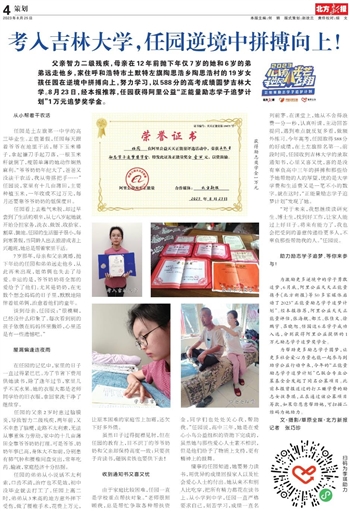 考入吉林大学,任园逆境中拼搏向上!