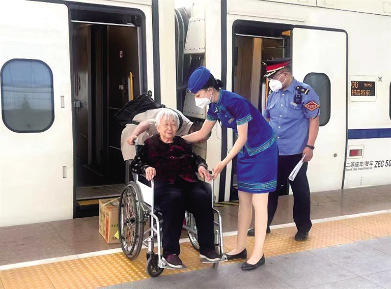 今年暑运期间,包头至郑州的D2784次列车趟趟满员运行,青年乘务员罗妮认真学练客运服务技能,不断提高应急处置能力,主动服务好每一位重点旅客(如图),用心守护平安旅途。工作6年来,罗妮以“把旅客当家人”为座右铭,服务老、幼、病、残、孕等重点旅客200余人,获得表扬50余次,她用热情高效的服务扮靓了千里铁道线,温暖着旅客的漫漫旅途。摄影/郭文博