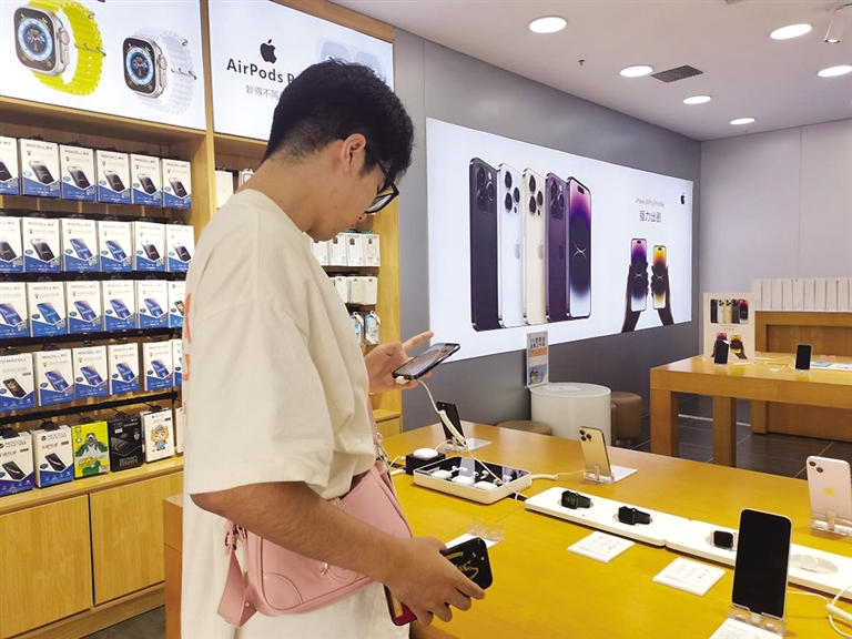 25日,记者来到海亮广场附近的电子产品专卖店,选购新机的大学新生并不多。一位店员说:“因开学季的到来,销量相比平时有一些提升,但较过去几年还是有所下降。”
