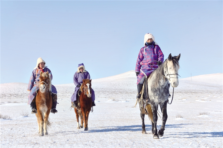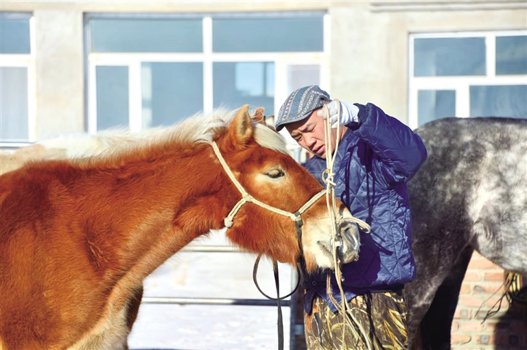宝力嘎负责巡查的遗址保护区地形复杂,不适合驾驶车辆,每次巡查他要从几十公里外的马场开上一台农用车,拉着马到遗址附近,骑马进入遗址保护区内巡查。他需要巡查的范围近30公里,巡查一次,在天气好的情况下也要3个多小时。冬天是最难熬的时候,零下30多摄氏度的天气,茫茫大草原被积雪覆盖。除了风雪呼啸,只能听到自己和马的呼吸声。