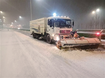 10日晚,市区两级城管环卫部门采取多项措施连夜奋战清雪除冰,保障市区道路畅通。全市一线环卫工人全员上岗,借助吹雪机、滚雪机、抛雪机等作业机具,在公交站点、地铁出入口、人行便道等区域开展清雪作业,并加大对城区快速路、主次干道机械化清雪作业力度。截至11日6时,环卫部门共出动清雪除冰车辆385台,作业机具280余台,3100余人,市区主次干道基本保障正常通行。