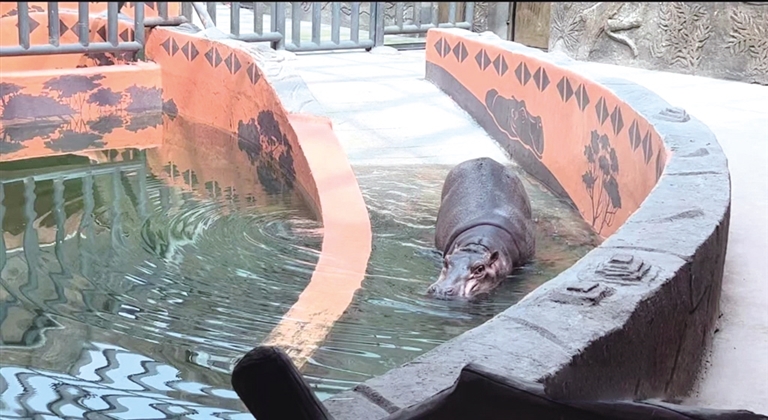 温乐说,为让两头河马顺利度过寒冬,动物园在场馆内安装了各种供暖设施,门窗加设棉布帘,还增加3台天然气炉,在它们的专属水池底部铺设地暖,让水温一直保持在15℃~20℃。