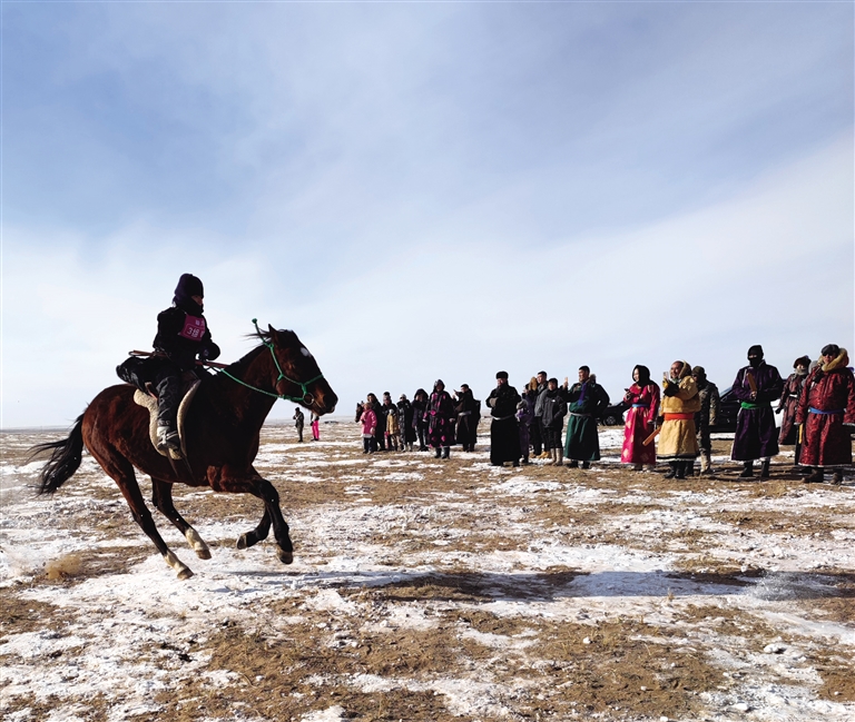 锡林郭勒盟举办的为期两个月的“马超”联赛,是一次专为喜欢养马、骑马的牧民群众组织的“草根”联赛。参赛马匹是土生土长的蒙古马,选手是当地各族群众,场地就在白雪覆盖的草原上。从嘎查级开始比赛,来自全市22个嘎查300多名骑手报名参赛。“马超”不只是一次比赛,更是为锡林郭勒地区发展现代马产业、助力乡村振兴、促进牧民增收而探索的一条新路子。