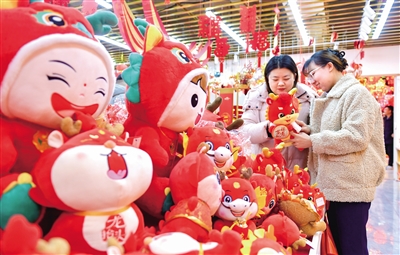 1月22日,呼和浩特市民在国贸批发城内选购龙年吉祥物。进入腊月以来,中国龙元素饰品走俏呼和浩特各大商超,将喜庆吉祥的氛围感拉满,同时承载着人们对新一年的美好祈愿。