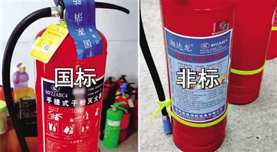 湖南闽湘消防设备有限公司是一家专门从事灭火器生产的企业,负责人告诉记者,他这里非标灭火器可以定做,加上一套应付消防检查的技巧,再配上正规“身份证”,一个“合格”的灭火器就出炉了。