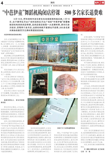“中芭伊童”舞蹈机构闭店停课 500多名家长退费难