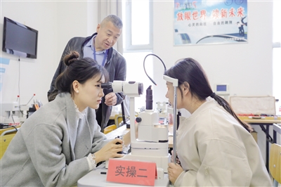 3月29日,学员在呼和浩特市玉泉区零工市场“眼镜验光员”职业技能培训班上参加实操训练和考试。近年来,呼和浩特市玉泉区零工市场根据就业需求和劳动力就业意愿,精准开展眼镜验光员、眼镜定配工、电工、焊工、家政等“点单式”就业技能培训班,让群众在技能培训中蓄能充电,增强就业创业能力。摄影/草原全媒·北方新报首席记者 牛天甲