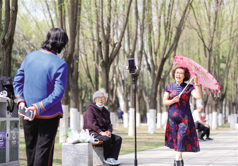 4月9日,呼和浩特一处街边公园内春意盎然,市民尽享美好时光。近年来,呼和浩特不断构建融合自然生态、游憩休闲、文化旅游等元素的街头综合生态体系,推进精致优美生活空间建设,各类绿化造型赏心悦目,提升了市民的幸福感。
