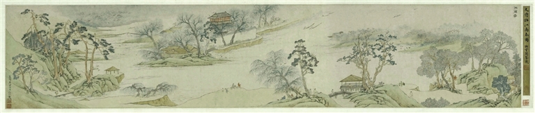 说起这幅画卷,离不开元代画家倪瓒所作的《江南春》词。这首词在明代吴中名士中影响甚广,从明朝弘治二年起至崇祯的一百多年间,吴中诗人以《江南春》为题,创作了110多首吟咏江南春天的诗歌。在这场旷日持久的唱和热潮中,文徵明曾多次创作,他笔下的《江南春词意图卷》彰显出一种惬意而温情的“幸福感”,勾勒出文人的精神家园,也塑造了世人对江南的想象。