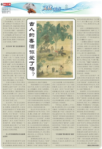 古人所饮春酒质地浓浊能喝出浮沫