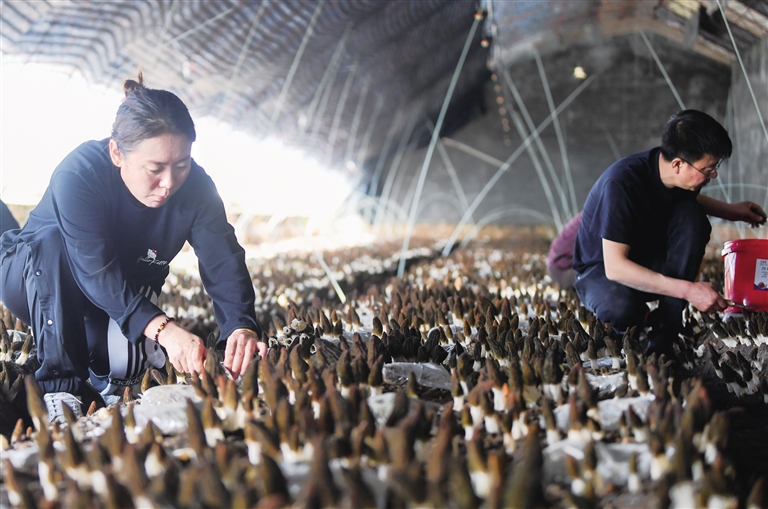4月16日,在位于呼和浩特市新城区恼包村的羊肚菌种植基地,工作人员正在采摘羊肚菌。羊肚菌素有“菌中之王”美誉,因其营养价值和鲜嫩口感,广受市场欢迎。内蒙古瑞福杨种植专业合作社带动恼包村、乔家营村15户农户种植羊肚菌,种植面积150亩左右,预计每亩收入4万元。摄影/草原全媒·北方新报首席记者 牛天甲
