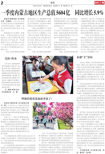一季度内蒙古地区生产总值5604亿 同比增长5.9%