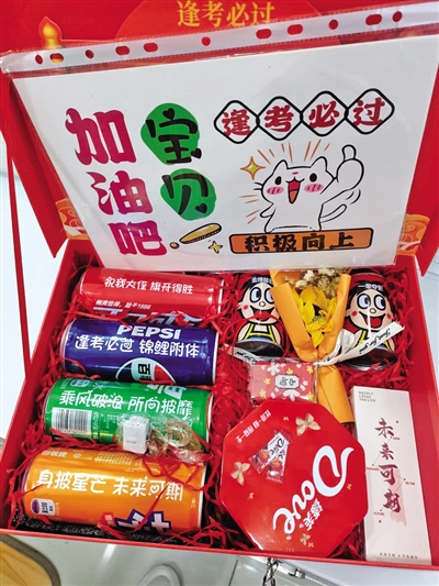多位考生家长告诉记者,为讨个好彩头,购买寓意吉祥的商品送给孩子,带给他们信心与祝福,还有的准备穿旗袍送考,寓意“旗开得胜”,为孩子助力。