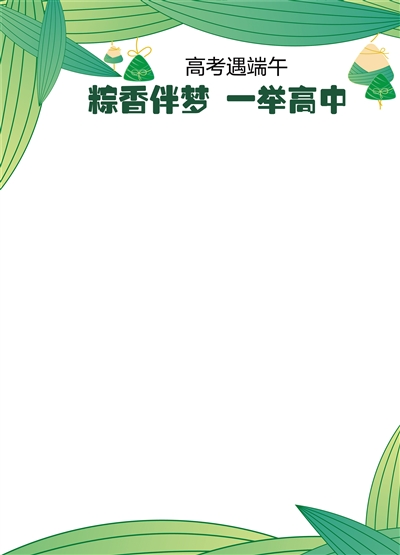 今年,端午小长假与高考不期而遇,这也让考生和家长有了特别的期待。近日,一幅对联在社交媒体上走红,上联“高考遇端午,全是985”,下联“家家插艾蒿,最低211”,横批“高‘粽’状元” ,充满了美好祝愿,希望考生们能取得好成绩。