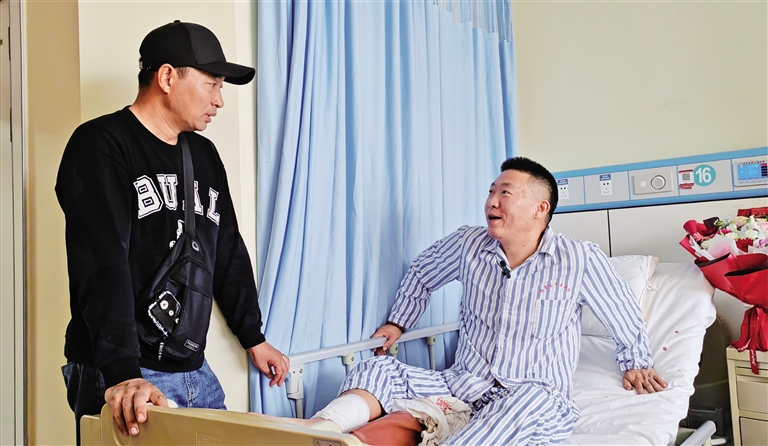 “外卖小哥得救,我就安心了,不后悔。这么热的天,小哥在厕所里万一晕倒休克,后果不堪设想。”7月15日,躺在内蒙古自治区中医医院住院部的王宇鹏很干脆地说道。王宇鹏是一位健身达人,自己经营着一家汽车美容店。经医院初步诊断,王宇鹏右小腿的动脉、静脉、神经被割断,经手术脱离危险,需住院两周继续治疗。虽然负伤,但是王宇鹏说:“救人是本能,以后再遇到这样的情况,还是会出手相救。”