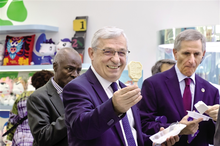 参观结束,马耳他驻华大使白瀚轩特意在纪念品商店挑选了一款热门的“阴山岩画”冰箱贴。“我喜欢这个创意。文明之间的交流至关重要,我们支持全球文明倡议。再来内蒙古,我一定要去看看真正的岩画。”