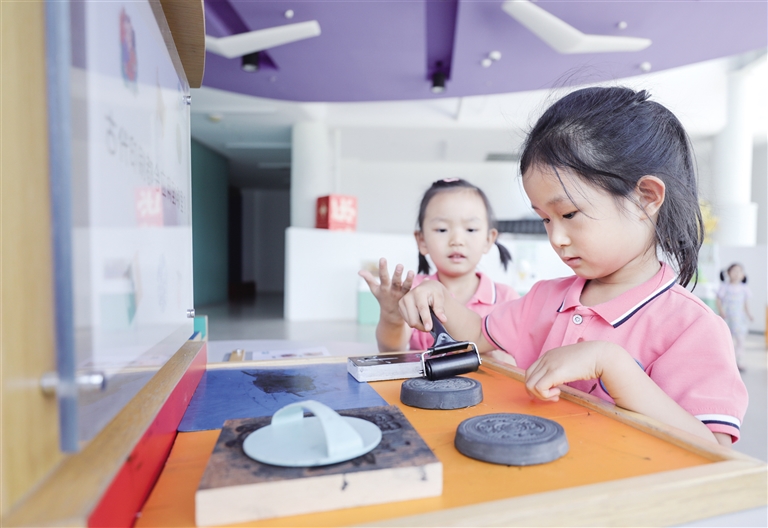 7月19日,一位小朋友在体验拓印。当日,呼和浩特市老牛儿童探索博物馆以“穿越古今文明 共探科技未来”为主题的暑期特展正式开启。本次特展旨在通过一系列寓教于乐的活动,激发孩子们的好奇心和探索欲。展览不仅追溯了中国古代科技的辉煌历程,更将中国古代智慧结晶与当代科学技术相结合,展现了古代科技对现代生活的深远影响。场馆内,互动式展览和亲子体验活动让孩子们沉浸在探索的乐趣中,启发他们的创新思维和解决问题的能力。本次特展将持续至暑假结束。摄影/草原云·北方新报首席记者 牛天甲