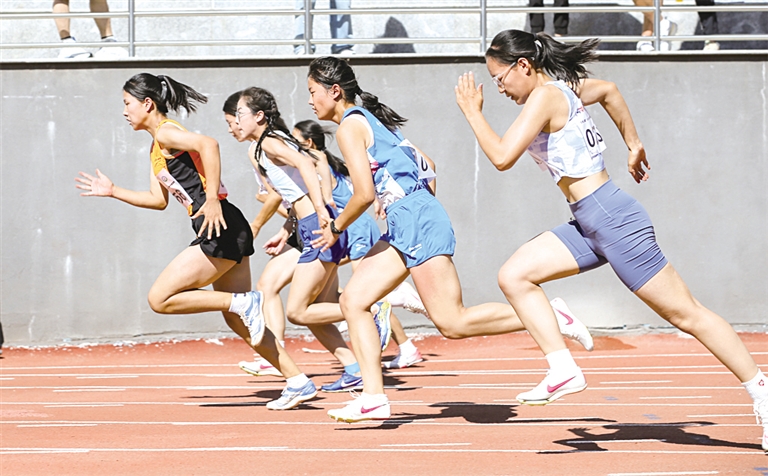7月26日,女子百米大战正在进行。当日,由内蒙古自治区体育局主办,呼和浩特市体育局、呼和浩特市体育运动学校承办,2024年“壮美北疆”全国青少年田径U系列邀请赛在呼和浩特市鸣枪开赛。本次比赛为期3天,共有来自宁夏、河北、河南、江苏、浙江、内蒙古6个省区的9支队伍共206名运动员参加争夺。比赛设100米、200米、400米、800米、1500米、标枪、跳远、三级跳远、铅球等15个小项。本次比赛旨在为运动员们搭建一个切磋交流、检验水平、取长补短的平台,推动田径后备人才的选拔和培养。