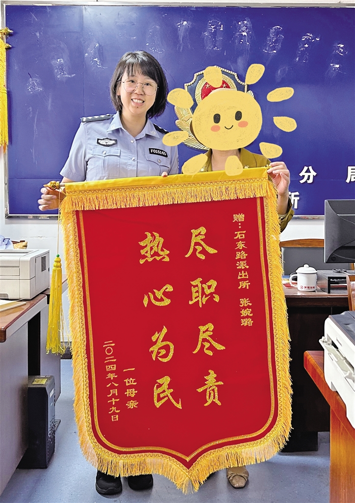 “我管辖的苁蓉社区有5000多名居民,每天我都要在辖区转一转,19个居民微信群,每个群我都在,大家都知道我。我的电话是公开的,24小时接听来电。居民们有矛盾纠纷或者遇到困难危险时,常给我打电话。”张婉璐1988年出生,在玉泉区石东路派出所基层一线已工作12年,她的微信名简单明了:片警张婉璐。因她和群众关系密切,利于化解矛盾纠纷,去年6月,玉泉区公安分局决定成立张婉璐警务工作站。一年多来,张婉璐为群众办了许多实事,墙上悬挂着最新的锦旗日期是8月19日,这是一位母亲送的,为了感谢张婉璐帮助自己找到失散30年的儿子。