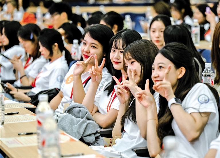 8月20日,在第三十届海峡两岸大学生新闻营开营仪式上,学生们一起合影。当日,以“一起向未来——全媒体时代两岸未来新闻人的机遇和挑战”为主题的第三十届海峡两岸大学生新闻营在内蒙古自治区呼和浩特市启动,来自大陆10所高校和台湾8所高校的近200名大学生参与。