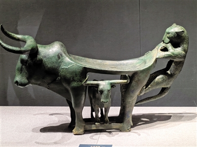 本次展览在结构上加入了与滇青铜文化同时期的中国北方青铜文化的内容。可以看出,区域特点鲜明和时代特征突出的两种文化却有着密切的联系,动物形铜饰件、管銎铜啄、铜剑、权杖等器物上出现了极强的相似性。滇王之印、铺首衔环、博山炉等具有中原文化因素器物的出现,昭示着中原王朝设郡县、实行屯田戍守、移民实边等一系列措施,使各民族在政治、经济、军事、文化等方面有了广泛而深刻的交流,极大地促进了各民族的融合和多元一体格局的形成。