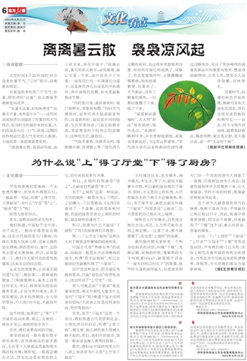 “处暑天还暑,好似秋老虎”“处暑天不暑,炎热在中午”……这些民谚或俗语生动描述了处暑后的天气特点。但当时令的指针来到处暑,人们还是会大出一口气,毕竟,这期间由热转凉已是天气变化的主基调,天地间那一派舒爽就要来到。