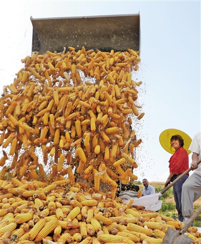 8月29日,四川省达州市大竹县川主乡铁佛村,驻村工作队员和村民在晾晒玉米。秋日时节,大地呈现一派丰收的景象。(据新华社报道)