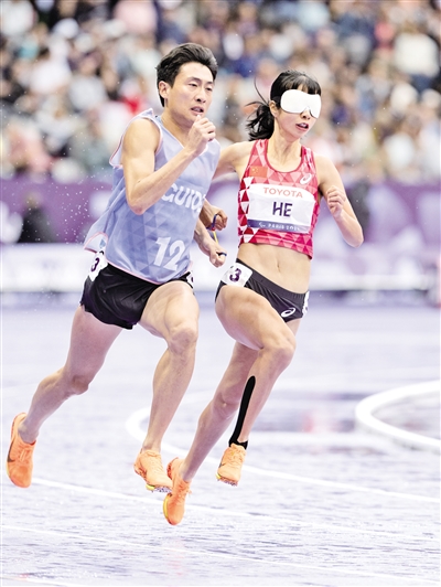 “这是宿舍的大姐姐给我梳的头,叫‘好运连连’。”赛后,还喘着粗气的何珊珊笑着说,“对于这个新的成绩、新的突破,我感到很满意。真的要感谢杰哥,因为你就是我的眼。”戴着眼罩的何珊珊忽然间有些动情。