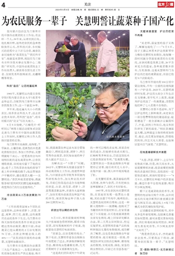 为农民服务一辈子 关慧明誓让蔬菜种子国产化