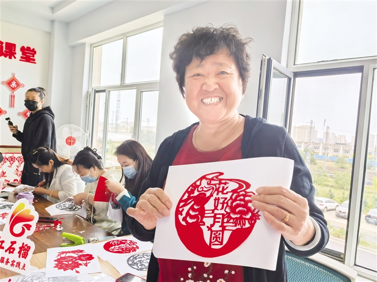 “感谢社区给我们提供了这样一个平台,免费教授我们各种手工艺品的制作方法,我不仅跟着老师学会了剪纸,还学会了玉米叶编织技艺,有了一技之长,对今后的生活也更有信心了。”王女士说。