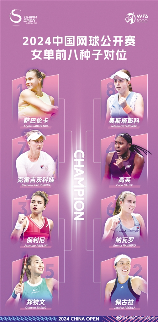 中网女单:郑钦文和萨巴伦卡 同一半区