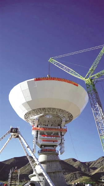 这是探月工程四期投资建设的一架射电望远镜,与今年8月在吉林长白山完成天线系统主反射体吊装的射电望远镜一起加入中国VLBI(甚长基线干涉测量)网,构成灵活的六站一中心“双子网”,具备同时观测两个不同天区的月球与深空探测器定轨能力。今年4月,中电39所工程人员、基建工程队和上海天文台工作人员入驻日喀则4100米海拔高原现场,通过6个月艰苦努力,7日上午顺利完成主反射体吊装。