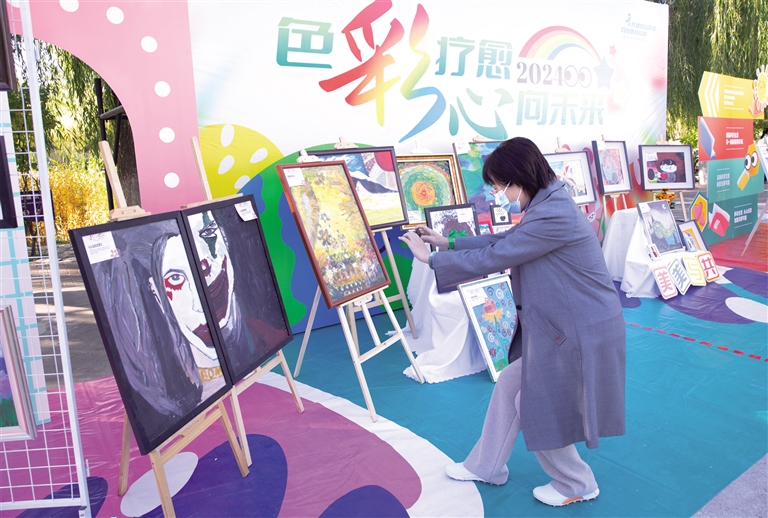 现场开展了丰富多彩的活动,“色彩疗愈 心向未来”精神障碍康复患者画展带领市民走进精神障碍康复患者的内心世界。心身健康义诊咨询服务区,来自呼和浩特市7家医疗机构派出的30多位学科专家提供义诊服务。最热闹的是解压互动游戏区,3个游戏吸引不少市民排队参与。此外,内蒙古自治区脑科医院(第三医院)睡眠医学中心的医护人员还为市民展示了睡眠操,提醒大家重视精神卫生。