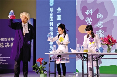 10月23日,参赛选手正在进行科学实验项目的比拼。10月22日,由中国科协主办,中国科技馆、中国自然科学博物馆学会科技馆专业委员会联合承办的第八届全国科技馆辅导员大赛全国总决赛在内蒙古科技馆拉开帷幕,来自全国31个分赛区的284个项目现场角逐。本次大赛设“展品辅导”“科学实验”“科普短剧”和“科学课程(活动)”4个项目,旨在通过以赛代训、以赛促学的方式,提高科技馆辅导员的综合素质和专业技能,打造高质量的科技志愿者队伍,促进全国科技馆资源共享,助推现代科技馆体系高质量发展。摄影/草原云·北方新报首席记者 牛天甲