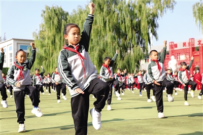 10月23日,学生们在进行太极操表演。当日,2024年呼和浩特市“五个一万”全民健身工程系列活动——万人太极拳展演在回民区实验小学举行。当日,共有来自呼和浩特市四区及各旗县区、学校的2000多名太极拳爱好者参加展演。本次展演旨在推进全民健身运动,增强全民身体素质。据了解,“五个一万”全民健身工程系列活动是呼和浩特市的一项品牌活动,已经连续举办七届。摄影/草原云·北方新报首席记者 牛天甲