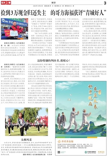 捡到3万现金归还失主 的哥方海福获评“青城好人”