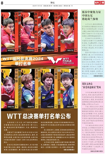 WTT总决赛单打名单公布