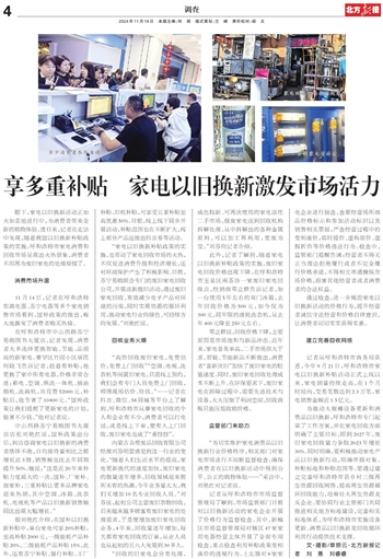 “为切实维护家电消费品以旧换新行业价格秩序,相关部门对家电市场进行不间断监督检查,确保消费者在以旧换新活动中得到公平、公正的购物体验……”采访中,刘艳红对记者说。