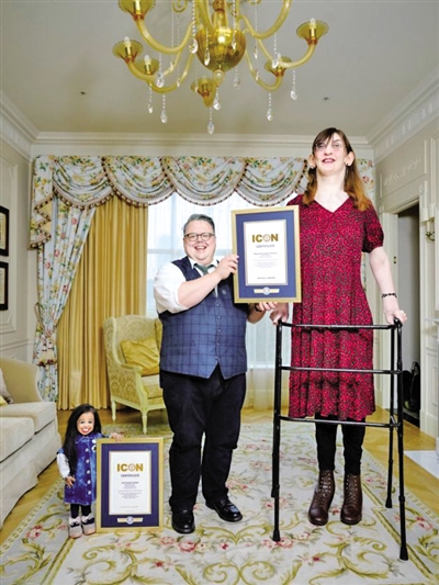为庆祝今年的“吉尼斯世界纪录日”,吉尼斯世界纪录认证机构特别安排了盖尔吉和安吉的这次会面。(袁 原)