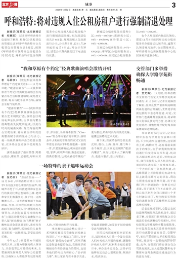 演唱会邀请了傲日其愣、阿都沁组合、娜日莎、孟根花、呼和木其尔、萨如拉、乌日格希拉图、“Classmate”组合等内蒙古青年歌手。演唱会中,《美丽的草原我的家》《父亲的草原母亲的河》等经典歌曲一首接一首,只要旋律响起,观众就开始跟唱,掌声、欢呼声不断。熟悉的旋律、经典的歌词,让观众感受草原的广袤与豪迈,聆听时尚与传统的交融,碰撞出独特的艺术火花。