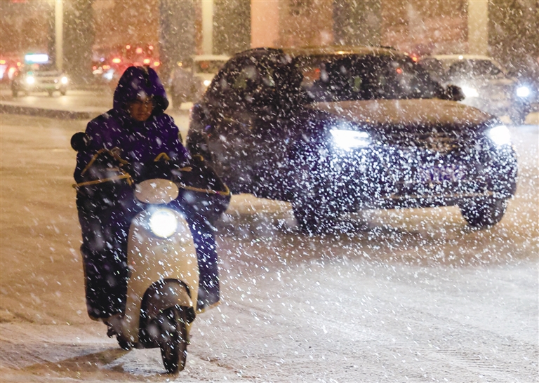 12月12日17时许,正值晚高峰,一场久违的降雪给呼和浩特带来了冬天迟到的礼物。纷纷扬扬的雪花从空中飘落,归途中的人们或加快脚步、或驻足拍照,冬日的首府街头,也多了些许诗意。