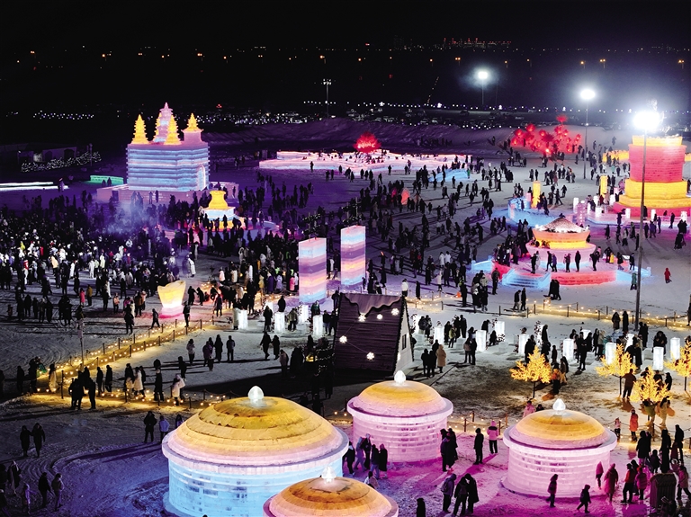 在这场冰雪盛宴中,游客们或驻足冰雕前拍照打卡,或感受300米冰滑梯带来的乐趣,或坐上皮圈感受冰雪快乐……与此同时,万人大合唱、电音派对兔子舞、造浪摇滚狂野互动以及炫舞竞技和有奖互动的无限惊喜,将冰天雪地的气氛推到热烈高潮。