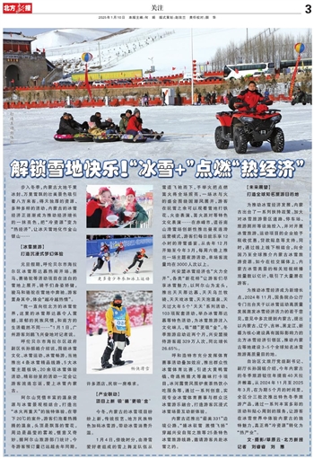 为推动冰雪经济成为新增长点,2024年11月,国务院办公厅专门出台关于以冰雪运动高质量发展激发冰雪经济活力的若干意见,意见中多次提到内蒙古,提出以内蒙古、辽宁、吉林、黑龙江、新疆为核心建设具有国际影响力的北方冰雪经济引领区,推动内蒙古等地建设3~5个全球知名冰雪旅游高质量目的地。