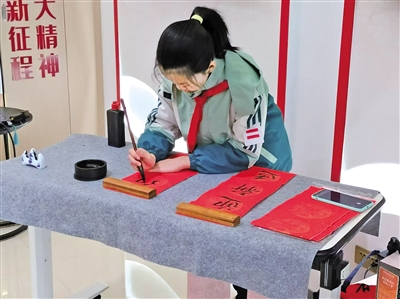 呼和浩特市第十六中学小学部的林钰琪和林岩还分别讲了《东风快递,使命必达》和《嫦娥姐姐回家了》的故事,铁路第三小学的徐芮溪还为杨爷爷现场书写新春对联。