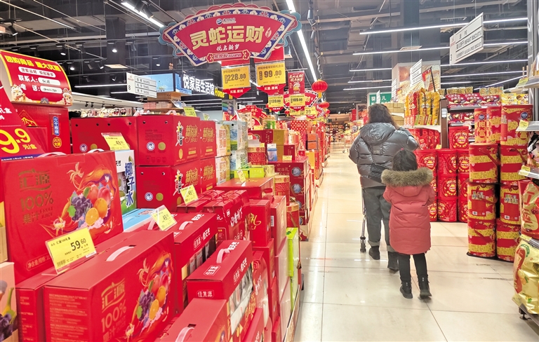 “现在超市里什么都有,不用东奔西跑,一站式就能把年货备齐。”市民赵女士说道。