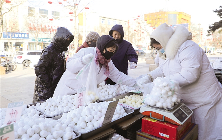 2月6日,呼和浩特市民正在购买元宵。随着正月十五元宵节临近,呼和浩特大小商超、街边集市上各种不同口味的元宵摆满了货柜,不少市民则更钟情于传统手工制作的元宵。
