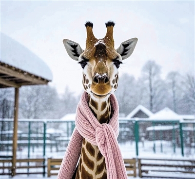 长颈鹿修长的脖颈围着一条柔软的羊绒围巾,优雅尽显。